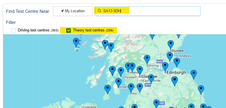 Not sure what test centres are close by? Check our map, enter your post code and filter by Theory test centres: